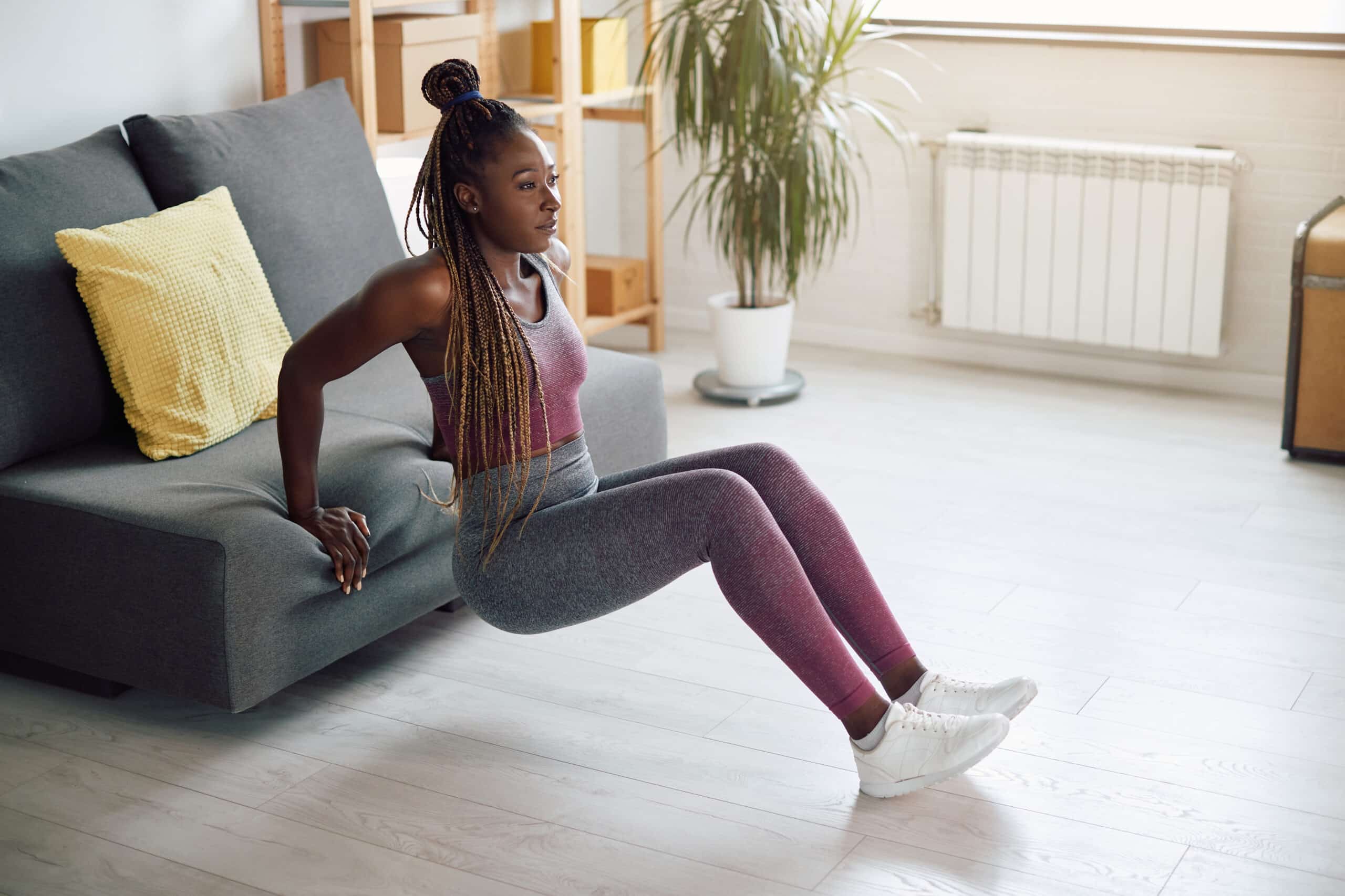 1. Tríceps no banco (mergulho em cadeira) — força e resistência em casa